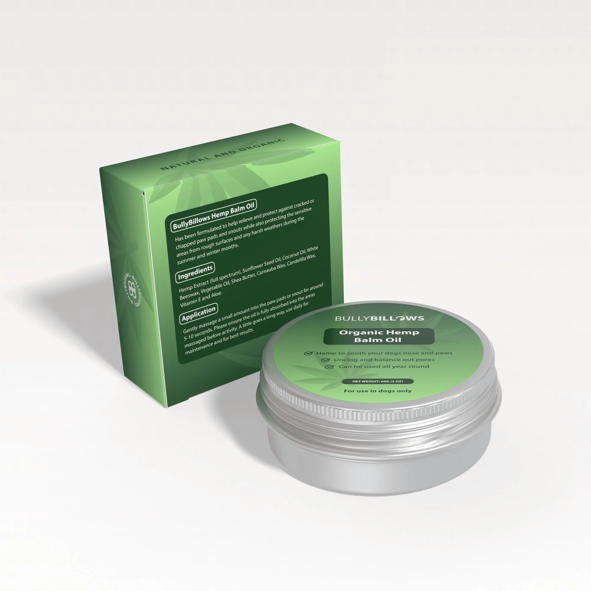 BullyBillows Premium Hemp Oil Extract to sooth your dogs nose and paws.